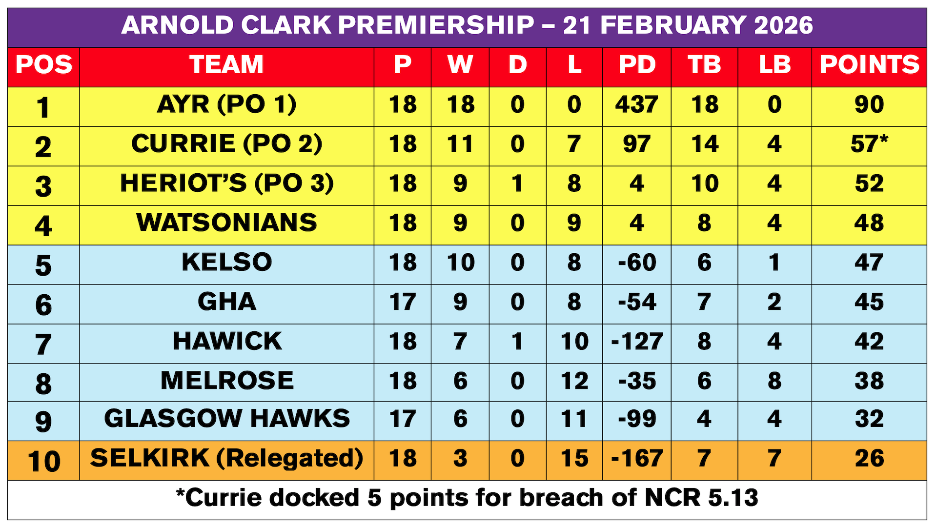 | Selkirk | 17-14 | Kelso |