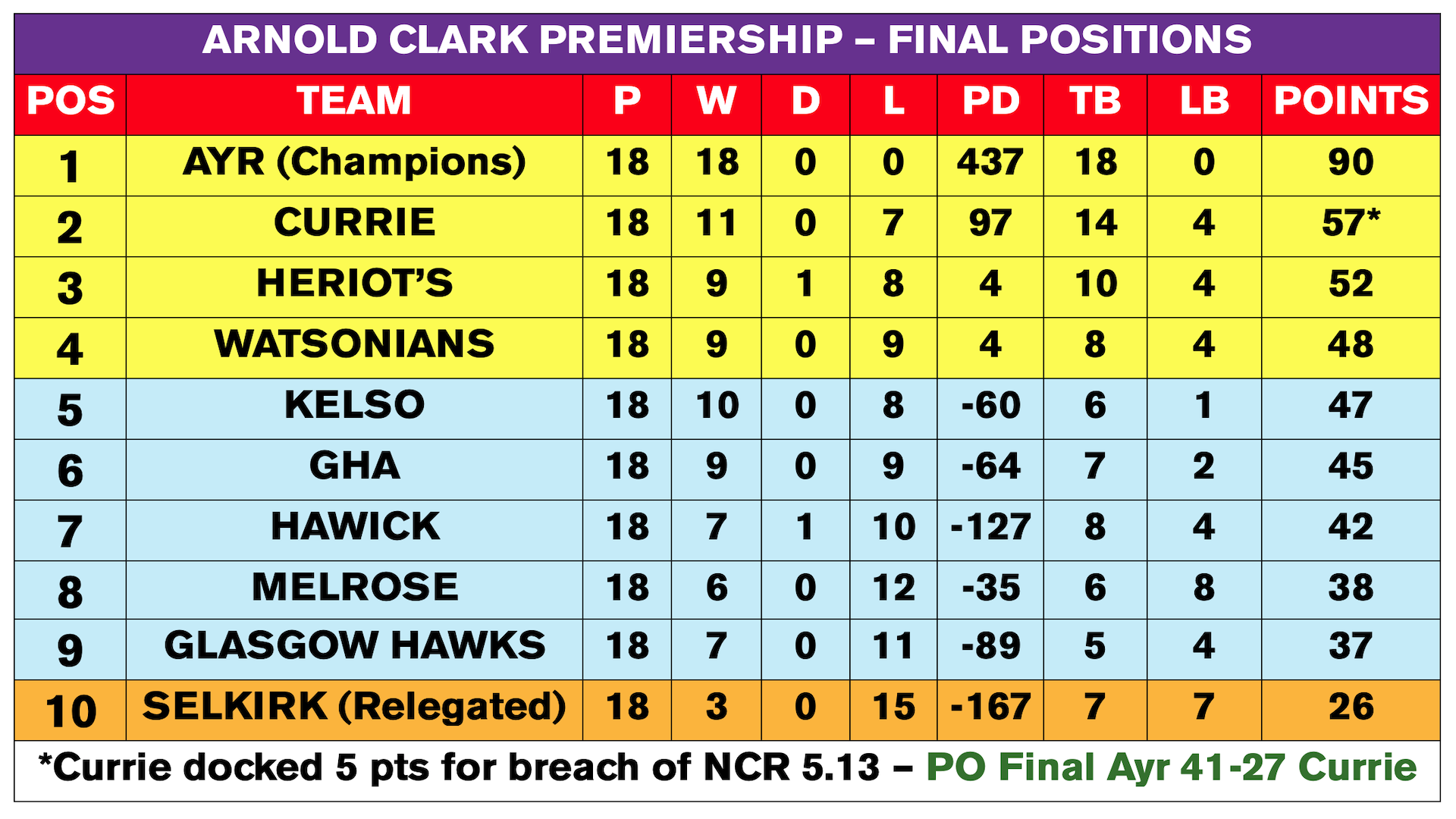 | Ayr | 41-27 | Currie |