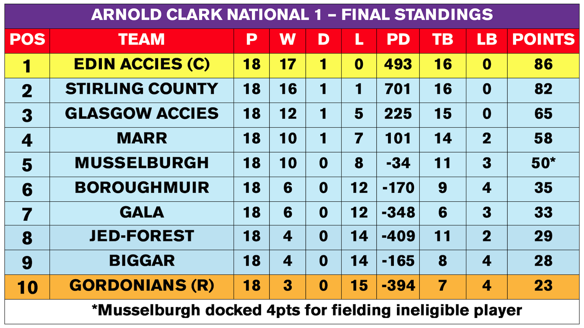 | Edin Accies | 46-12 | Boroughmuir |