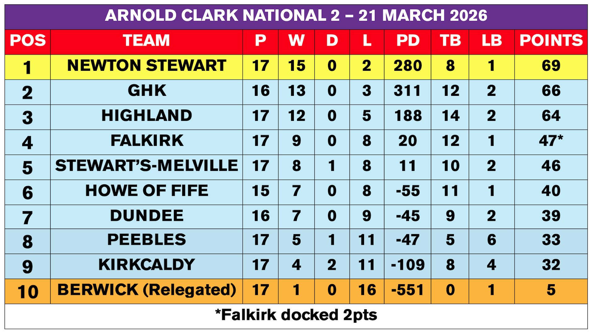 | Falkirk | 17-57 | Dundee |